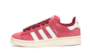 A base Pink Strata domina o upper em camurça premium, contrastando perfeitamente com os detalhes Cloud White nas 3-Stripes serrilhadas e na inscrição 'CAMPUS'. O logo Trefoil estampado no heel tab adiciona o toque final de autenticidade adidas.
