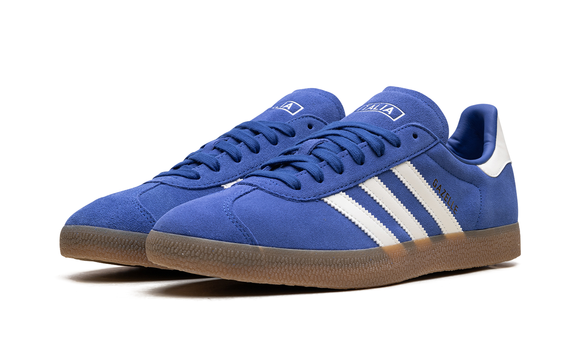 O upper em camurça Royal Blue de qualidade superior encontra-se com acentos em couro Off White nas 3-Stripes serrilhadas e na aba do calcanhar. A marca ITALIA impressa na língua e as letras GAZELLE em Dourado Metálico no painel lateral criam um visual verdadeiramente exclusivo.