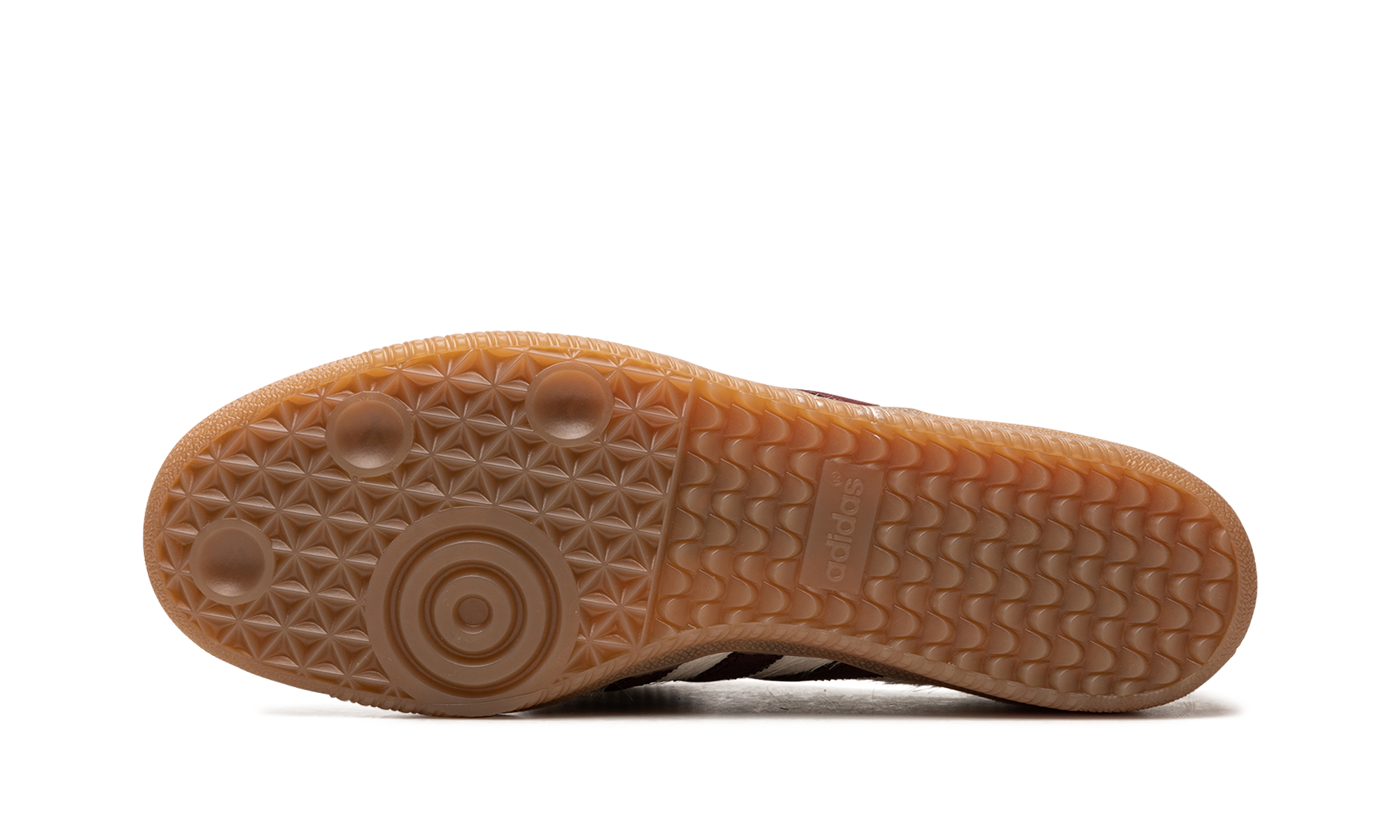 O upper combina pêlo pony cream white com detalhes em pele burgundy nas riscas, atacadores e patilha traseira. A construção robusta em sola de borracha garante conforto duradouro, enquanto os acabamentos co-branded no tongue criam um visual verdadeiramente distintivo.
