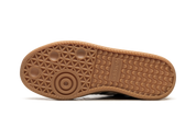 Este design Core Black Gum apresenta uma parte superior clássica em pele preta com sobreposições de camurça no mesmo tom na parte anterior do pé. Detalhes em branco no calcanhar, nas 3 riscas e na pala da língua, com a palavra Samba gravada a dourado. A versão XLG acrescenta um toque especial com uma pala e um calcanhar extra acolchoados.