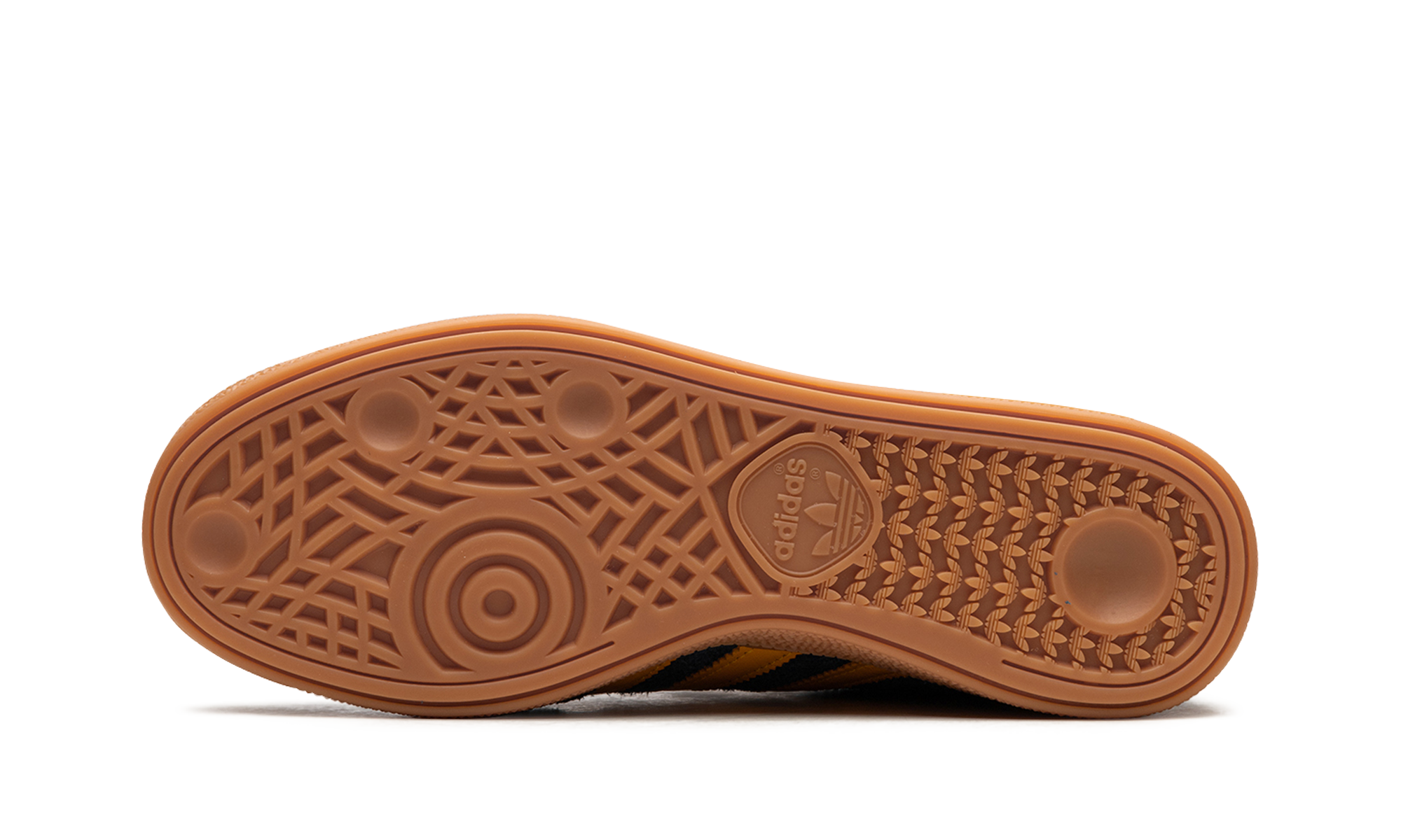 As adidas Handball Spezial Night Indigo Yellow reinventam um clássico de 1979 com um toque de street style. A parte superior em camurça Night Indigo contrasta com os detalhes em pele amarela vibrante, destacando as três riscas e o calcanhar. Esta combinação de cores torna estas sapatilhas numa peça essencial para qualquer coleção.
