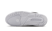 O design incorpora detalhes perfurados nos painéis laterais e língua para máxima respirabilidade, enquanto a unidade Air visível no calcanhar garante conforto superior. A sola branca sólida cria um contraste marcante com a parte superior preta.