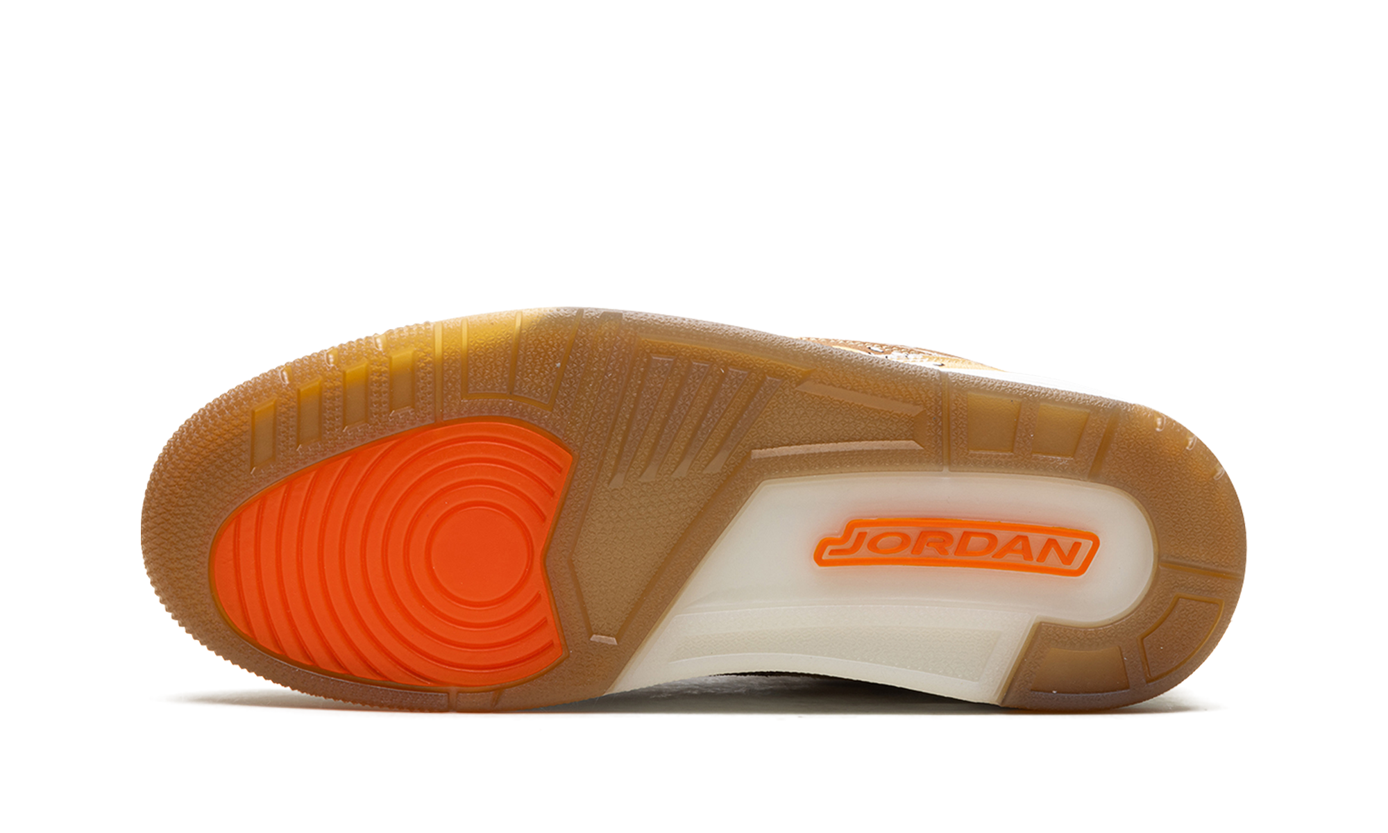 Legendary Air cushioning meets modern comfort with visible heel Air-sole units and lightweight polyurethane midsole. The padded collar features soft textile lining in light-hemp, while Brilliant Orange JORDAN lettering underfoot adds that perfect pop of color.