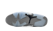 Os detalhes em azul-marinho contrastam de forma elegante na presilha do calcanhar, nos fechos dos atacadores e no icónico logótipo Jumpman, bordado na lingueta e no calcanhar. O design assenta numa entressola de poliuretano bicolor com uma unidade Air-sole visível, proporcionando um amortecimento superior a cada passo.