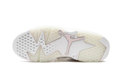 Step into legendary style with the Air Jordan 6 Retro Gold Hoops (W). This exclusive drop brings Michael Jordan's championship-winning silhouette into the spotlight with a stunning white tumbled leather upper and soft Barely Rose accents on the tongue and heel.