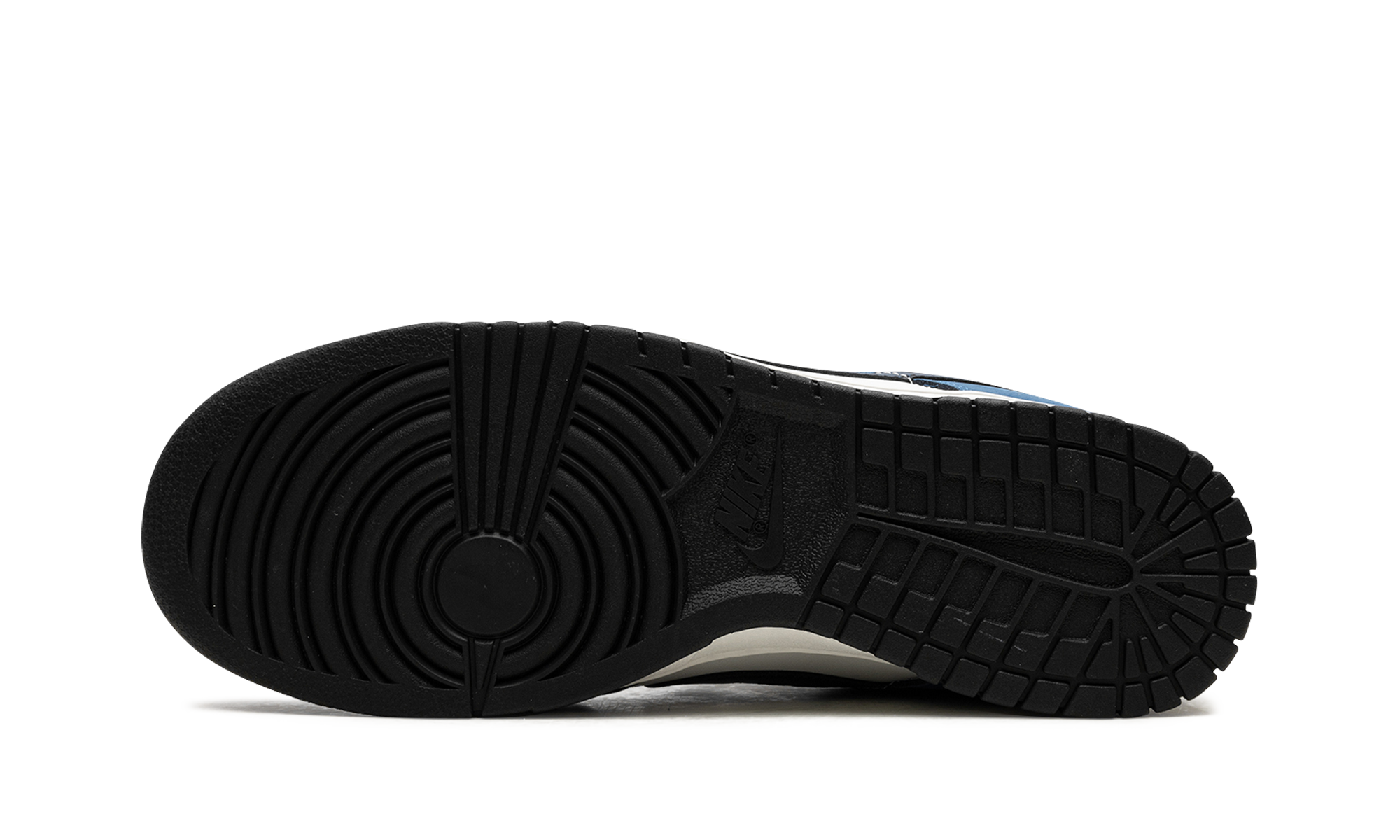 Step up your sneaker game with the Nike Dunk Low Airbrush Industrial Blue. This modern classic features a crisp white leather base, contrasted with bold black and Industrial Blue nubuck overlays. The standout feature is the airbrushed Swoosh, blending from blue to black for a unique, custom-look effect.