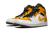 As Air Jordan 1 Mid University Gold são umas sapatilhas especiais que exibem orgulhosamente a sua paixão por cores brilhantes e reais. A tonalidade University Gold, um amarelo vibrante, cria um contraste elegante com os painéis em pele branca e os detalhes em preto.