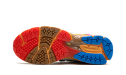 A construção em mesh durável com sobreposições TPU e detalhes refletivos garante conforto e estilo duradouros. A sola segmentada apresenta secções em azul, laranja e castanho, enquanto os atacadores verdes completam este design arrojado.
