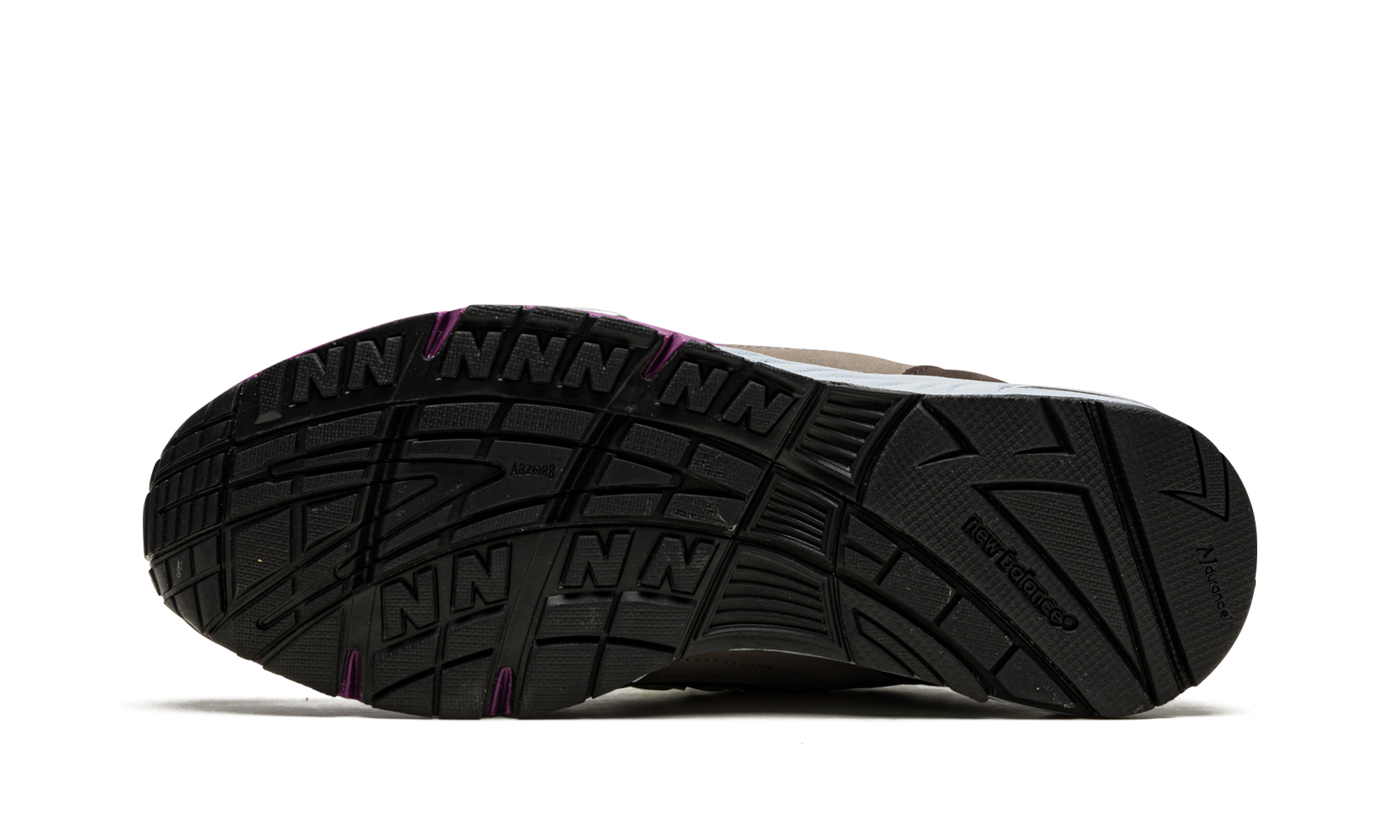 A entressola ABZORB em violeta e cinzento oferece máximo conforto e absorção de impacto. Estas sapatilhas limitadas, produzidas na fábrica Flimby da New Balance, são o equilíbrio perfeito entre performance e estilo urbano para quem não dispensa autenticidade.