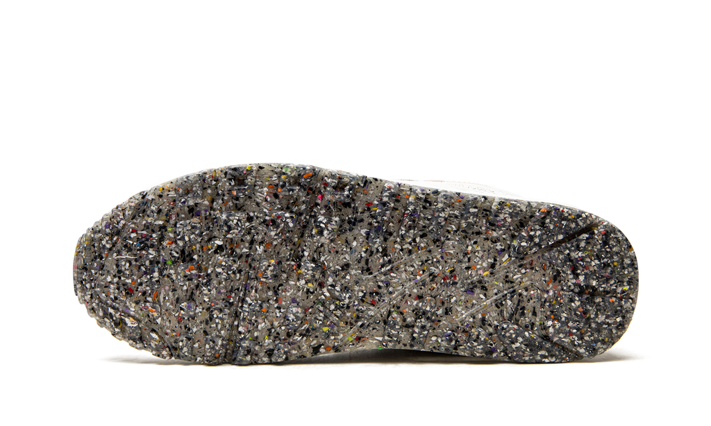 O acabamento imaculado em branco ganha vida com ilhós em TPU Bright Crimson, complementados por costuras em ziguezague a condizer que se estendem do calcanhar até à parte central do pé. O acabamento salpicado multicolorido na sola exterior waffle indica o uso de Nike Grind, que incorpora borracha reciclada recolhida dos chãos das fábricas.