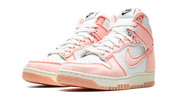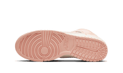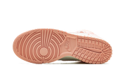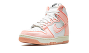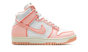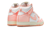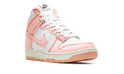 Construídas com pele branca e sobreposições em denim lavado com acabamento rosa desbotado, estas sneakers combinam materiais não convencionais com a forma alta original. A palmilha apresenta um padrão repetitivo de logos Nike, enquanto a sola exterior em borracha rosa foi desenhada para aderir perfeitamente ao pavimento.