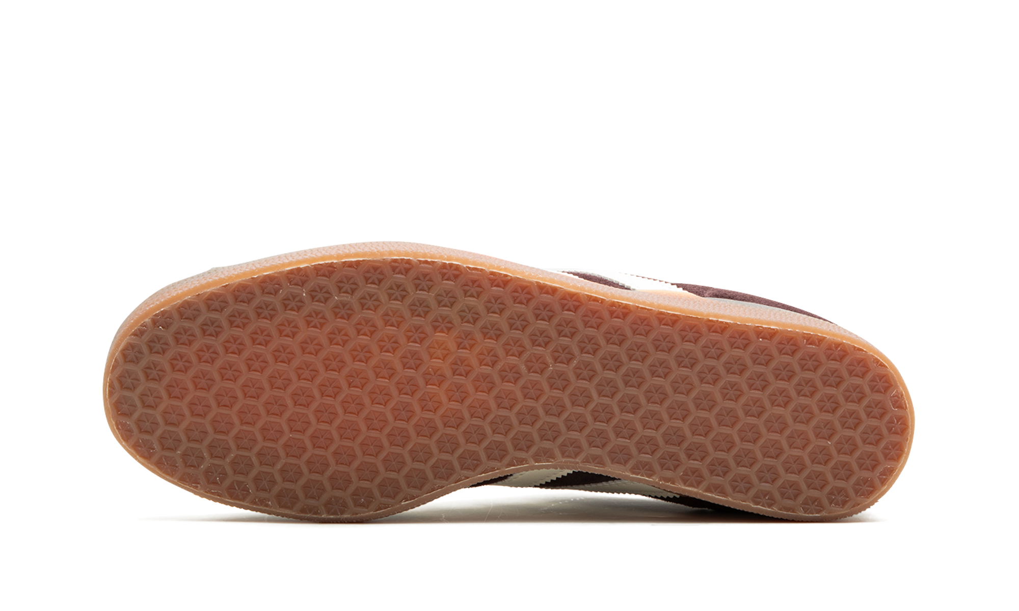 Detalhes como a marca "GAZELLE" em folha de ouro e a lingueta em pele castanha a condizer com os atacões criam um acabamento coeso. A sola de borracha de goma não só aumenta a durabilidade, como também inclui uma subtil proteção contra a lama que sobe pelas paredes laterais, conferindo um detalhe adicional.