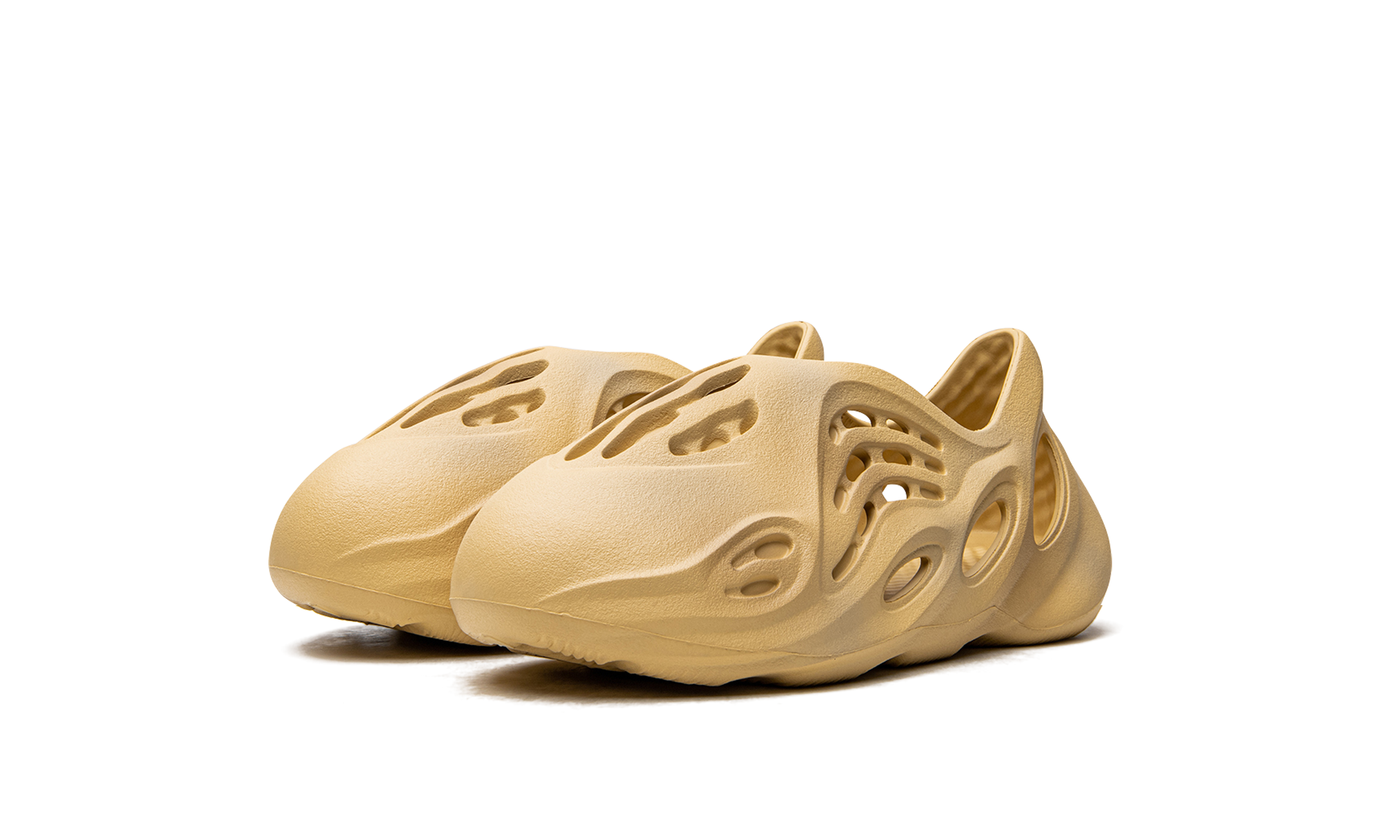 Este design futurista é o resultado de uma colaboração entre a adidas e a Yeezy, a marca do popular músico Kanye West. As sapatilhas foram construídas com algas colhidas e EVA, o que as torna leves e únicas. Foram lançadas em tamanhos para adultos, crianças e bebés no esquema de cores desert sand.