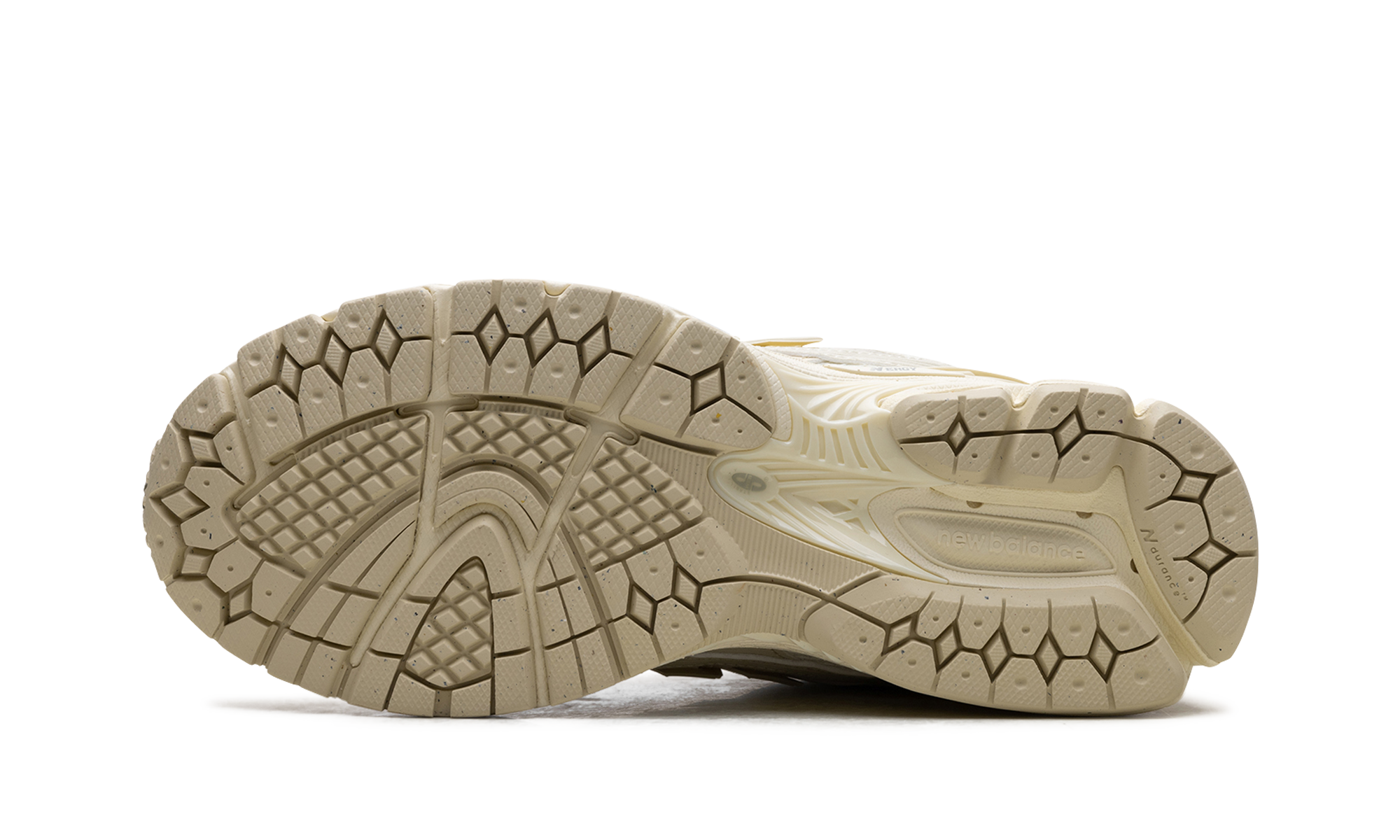 O design multi-texturizado apresenta sobreposições de couro liso e nobuck que se cruzam com detalhes sintéticos, criando uma estrutura única sobre uma base de nylon ripstop com padrão em grelha. O icónico logo N em tons de Butter Yellow complementa perfeitamente a sola esculpida na mesma tonalidade cremosa.