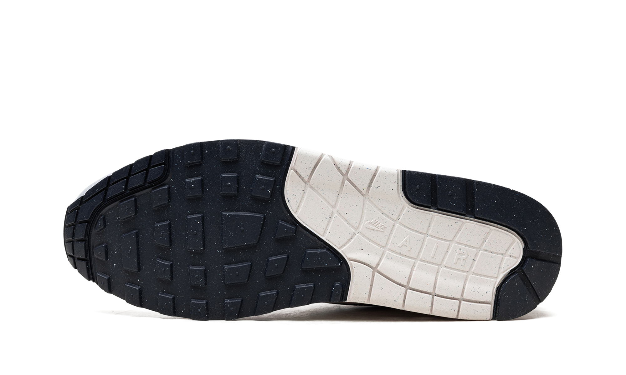 Contrasting hits of Dark Obsidian blue on the leather Swoosh, eyelets, and outsole branding make the design pop. This isn't just about looks; the padded collar and iconic Max Air unit in the heel deliver the responsive cushioning and all-day comfort you expect from an Air Max 1.