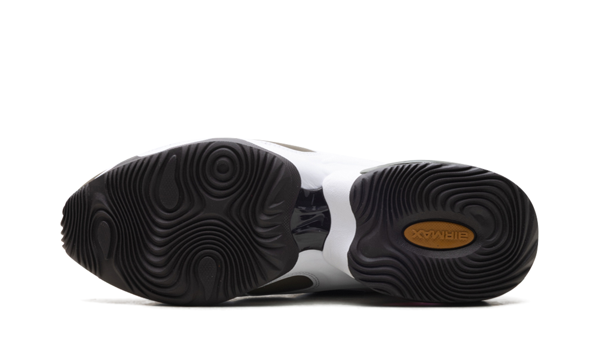Um mini-Swoosh moldado em bege escuro adorna o painel lateral, enquanto a marca 'AM' decora a lingueta e o calcanhar. O toque final é um vibrante tom rosa na unidade Air Max, que se destaca na entressola de espuma leve, garantindo um visual arrojado e único.